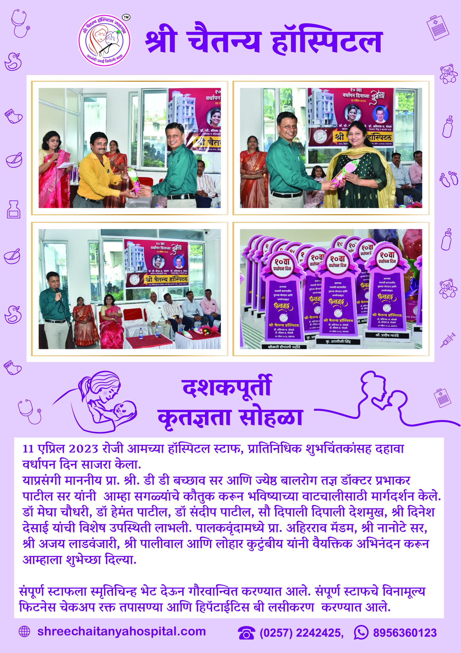 Shree Chaitanya Hospital celebrated its 10th Anniversary on 11th April 2023 with our hospital staff, representative and well-wishers.