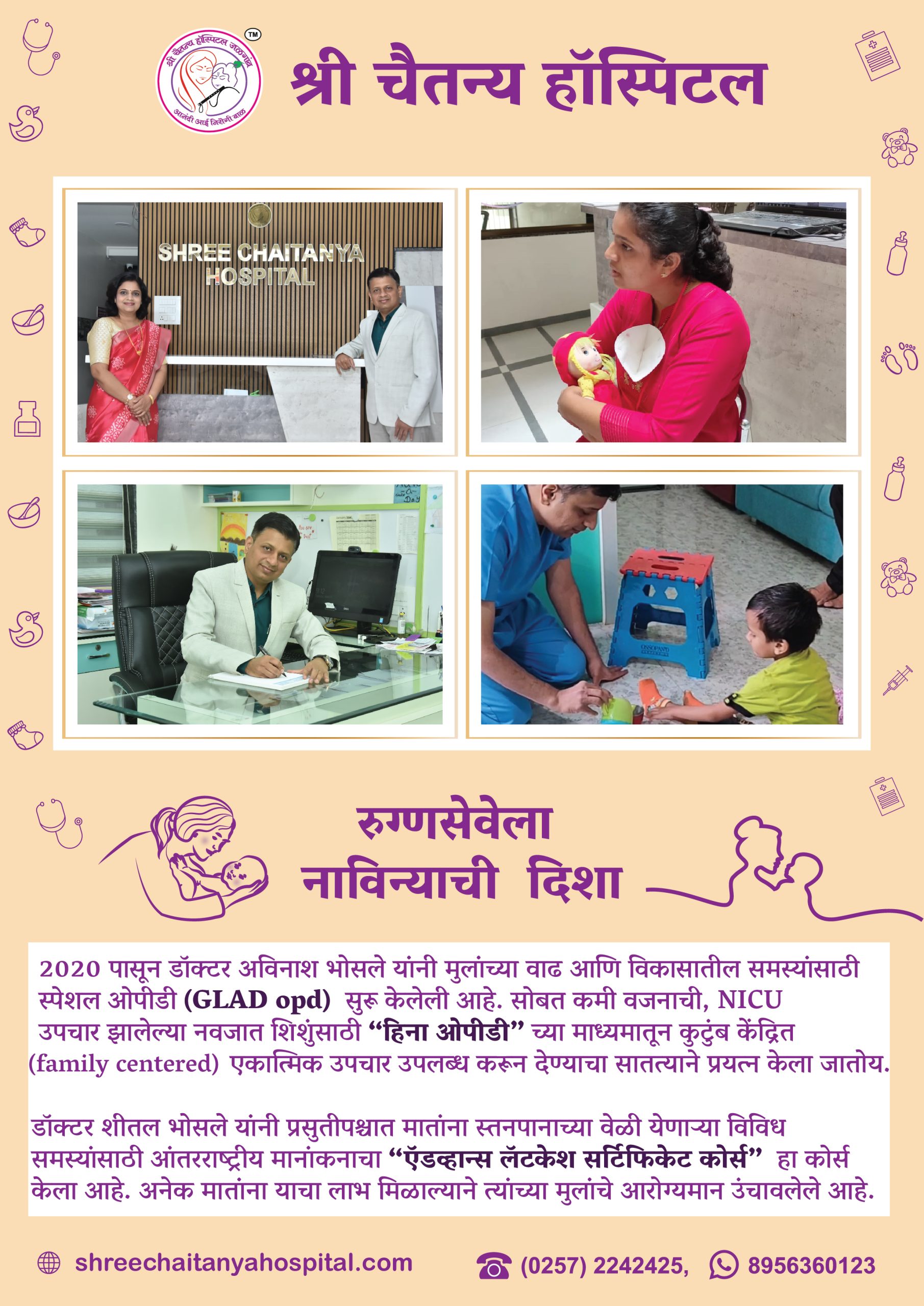 A specifised OPD called GLAD OPD was established by Dr. Avinash Bhosale in 2020 to address children’s growth, learning, and development issues. In addition, ongoing efforts are undertaken to offer low birth weight, NICU-treated neonates family-centered integrated treatment through “HINA OPD.”